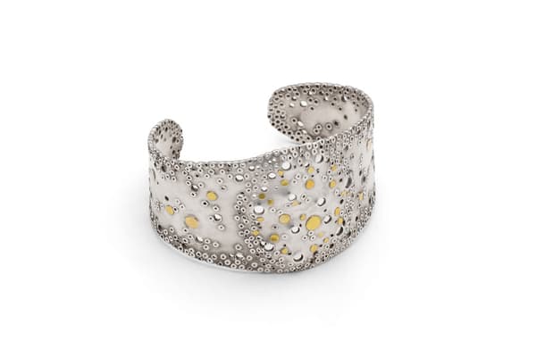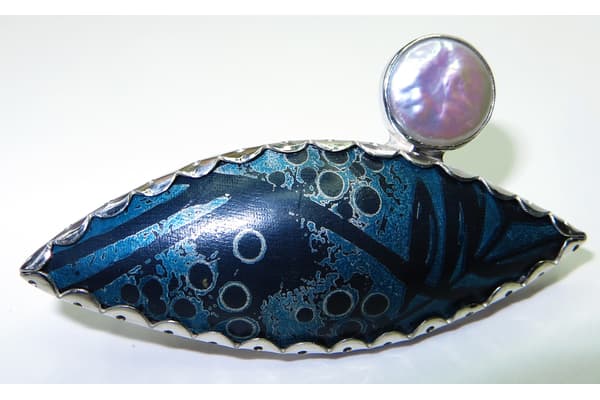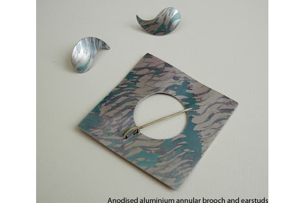 Inspired by colour, Lynne produces original one-off pieces of elemental contemporary jewellery, handmade using titanium and dyed anodised aluminium, often in combination with precious metals. She was awarded a PhD by Central Saint Martins in 2010 for a combined art and science project investigating titanium colouring for jewellery and has continued to experiment with titanium using machine and laser engraving.
