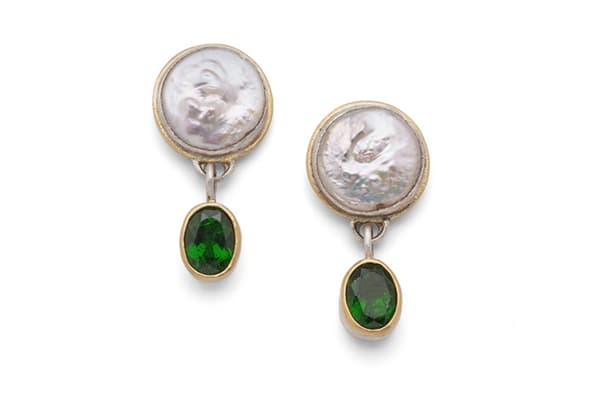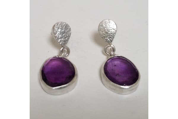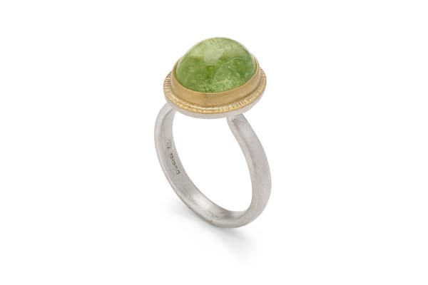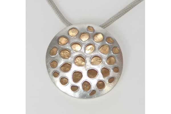 I work mainly in silver and like contrasting textures and metals so I use 18 carat gold and 22 carat gold plate as well as a variety of textured and plain pieces of silver to achieve the effect I want. I also use precious and semi precious gemstones.