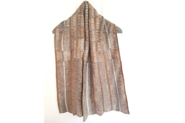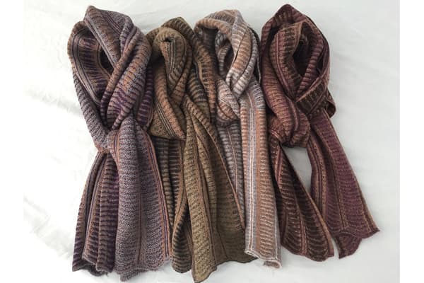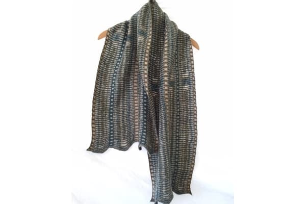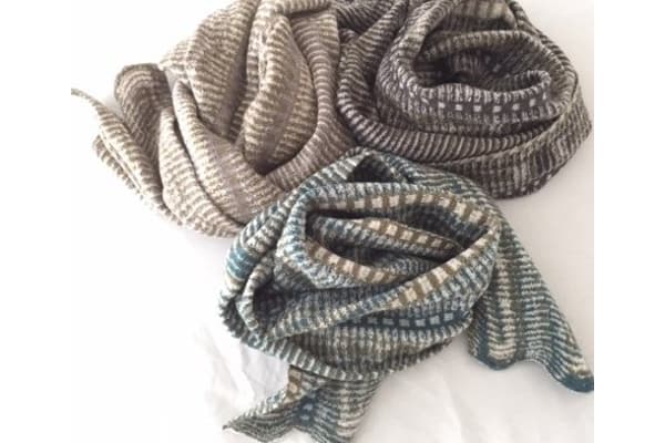 Each piece of work is made by the designer in Rye. Linzi has developed a knitting technique that creates a very light and warm fabric. This new collection takes its inspiration from the mid-century artists that lived around the South Downs.