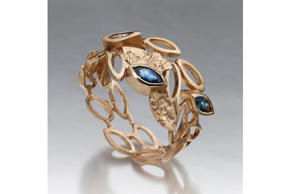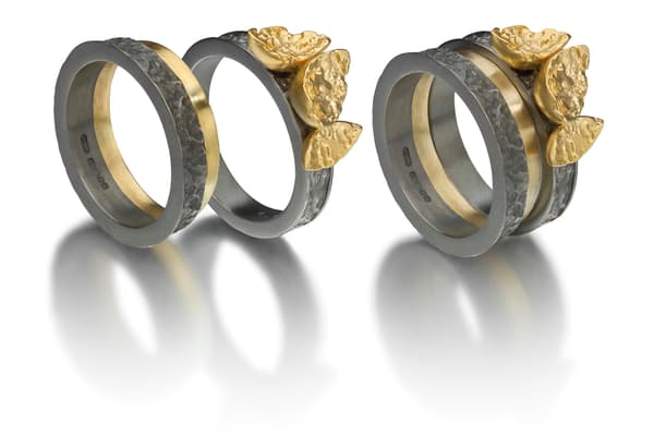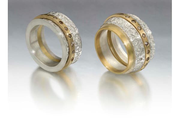 Susi Hines makes original and timeless jewellery in different coloured golds and silver with coloured diamonds and unusual stones using carefully worked and etched surfaces to make strong statement pieces of a unique and lasting quality. Her many construction techniques include her patented Mutabilis rings which can be adapted and expanded giving the wearer ultimate flexibility.