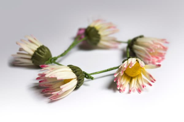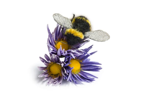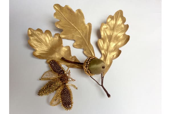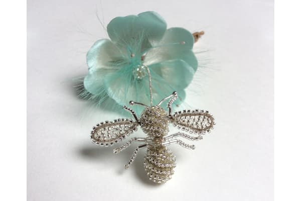Anne studied at West Surrey College of Art and London College of Fashion. She co-founded the Bailey Tomlin label in 1989 designing hats for the UK, USA and Japan. Now working under her own name and away from the hectic world of fashion, Anne is focusing on her love of wild flowers and bees and their symbiotic relationship, making pieces ranging from beaded brooches to miniature worlds of wild flowers.