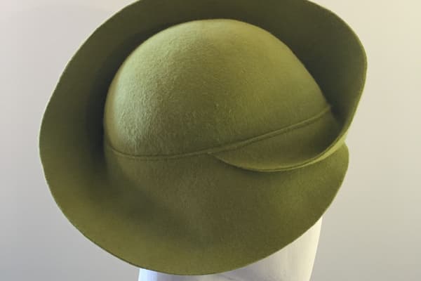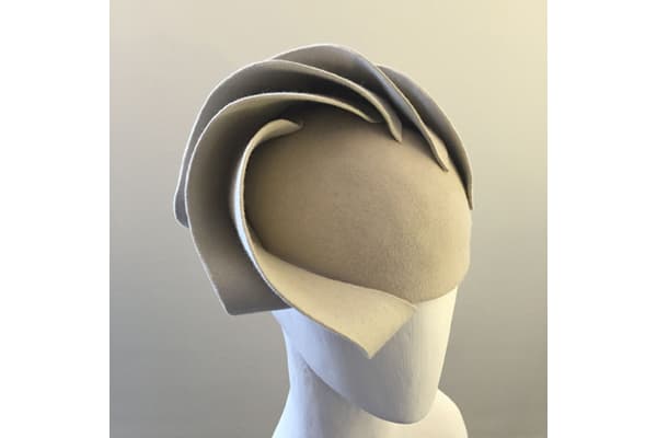 Angelika initially trained as an historian and uses her knowledge of art history as a rich source for inspiration. Unlike a milliner, she forms the shapes of the hat from pieces of fabric, which emerge from the structural qualities of the materials rather than from a block. Her work as a costume designer in the theatre often leads to ideas that she can translate into her hat designs and vice versa.