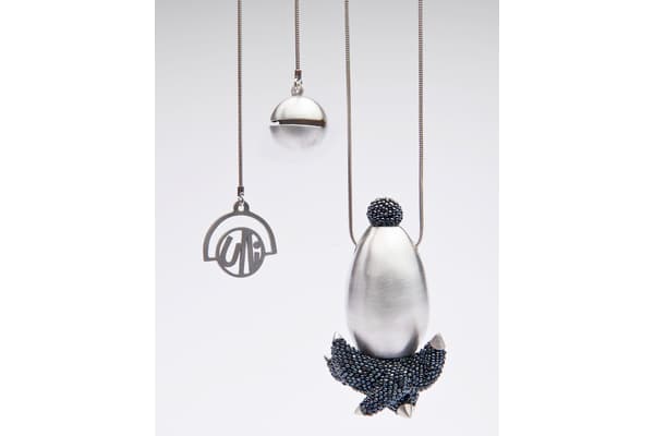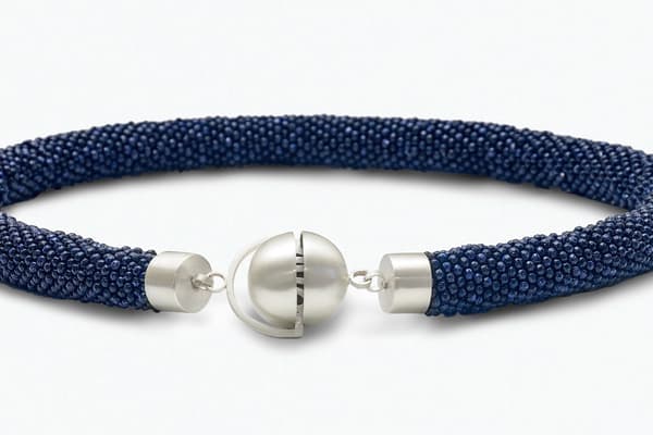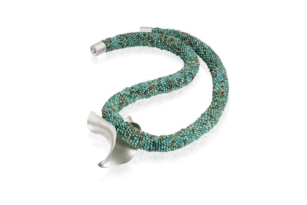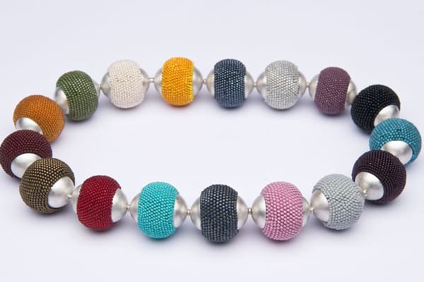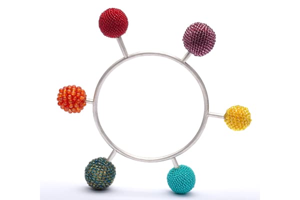 Ulli's approach to bead crochet is a contemporary one, allowing materials and their colours and textures speak. Using a medley of bead crochet, silversmithing and found objects, the gemstones, pearls, vintage fur and glass beads create a tactility that invite to touch. Underwater creatures, venus fly traps, myths and legends catch her imagination, and find their way into my shapes and colours, nevertheless, all her work evolves while making.