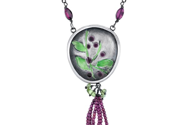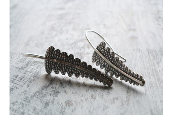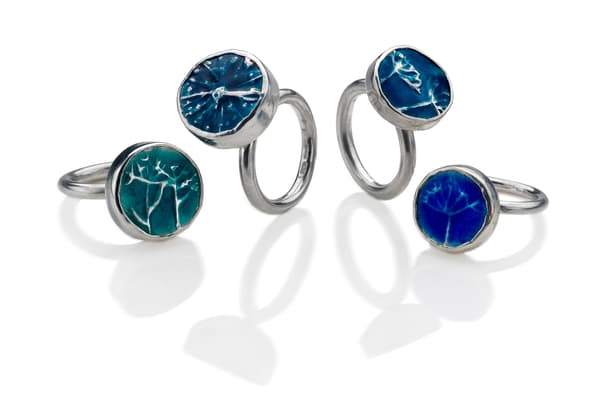 Cathy’s work is characterised by her transformation of the surface of precious metals to reflect botanical forms and scenes. Inspired by a unique combination of a degree in Botany and over 30 years of jewellery making, Cathy’s work evokes experiences of the natural world. Working predominantly with silver, Cathy uses direct casting, chasing and repousse, enamelling, stamping and piercing to create the sculptural surface of her beautiful wearable jewellery.