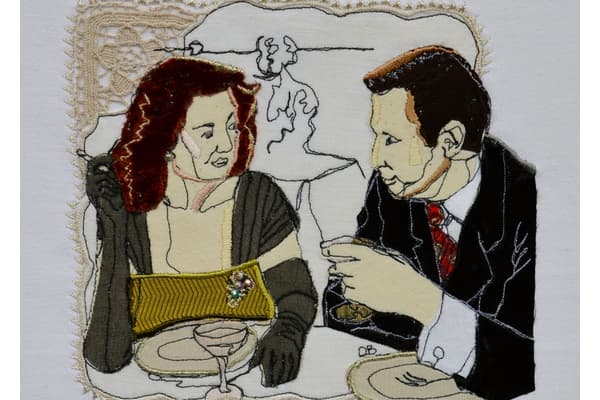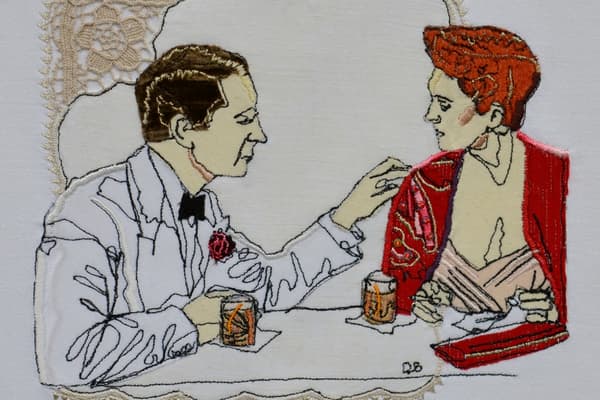 The subjects of Darren's work are varied and crystalize as ideas over a period of time. His current collection is inspired by 1940’s Stitchcraft magazines. He produces framed pieces of machine and hand embroidered artwork using free embroidery and applique to construct stylised images, some of which are embellished to enrich the surface of the composition. Economical use of line and gentle humour are combined to create contemporary stitched pieces.