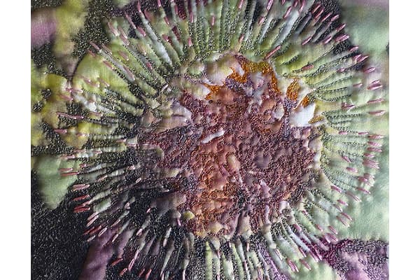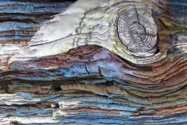 Nature and the natural environment provide inspiration for Diane's textile art. She uses silk fabric, free embroidery and free quilting to express her appreciation for the beauty of texture, forms and patterns created by exposure to natural elements and by the passage of time. She aims to achieve a compelling, irresistible tactile quality to each piece through the discord between the smooth, lustrous qualities of silk and her subject matter.