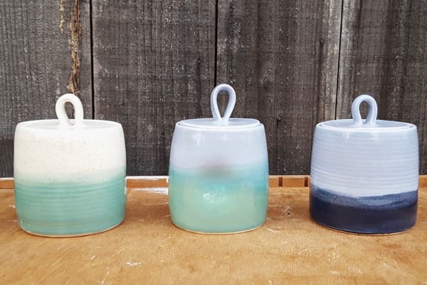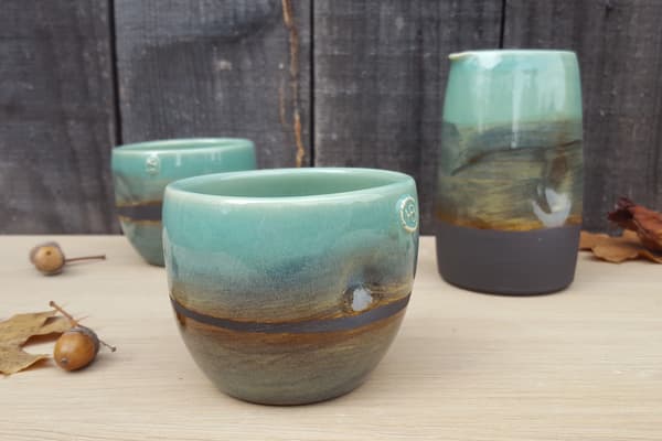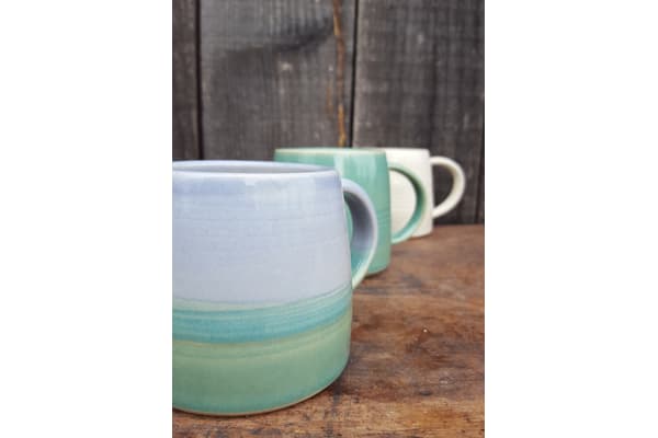 Holly is a ceramicist living in Brighton. She makes thrown and manipulated functional ceramics, in a calm palette that echoes the coastal landscape. Holly uses combinations of glaze and slip to describe the layers of colour found at the horizon, and tactile dimple impressions serve to retain a sense of the clay in its raw, soft state.