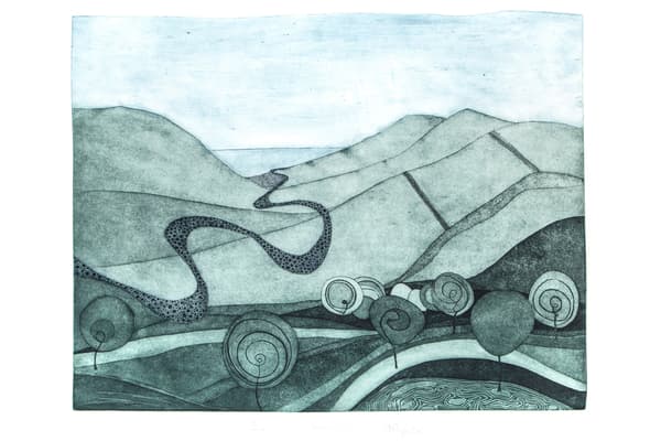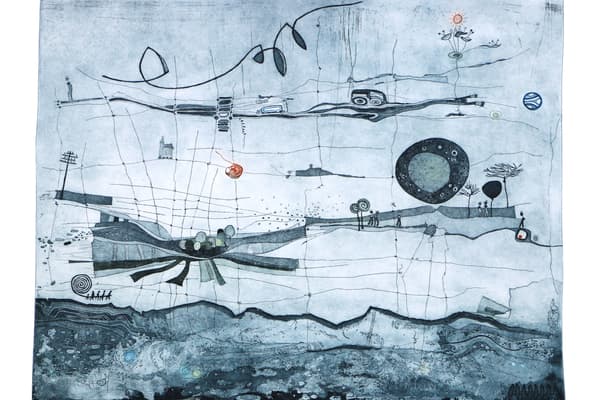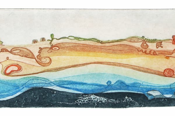 Heike's etchings can be described as semi-abstract imaginative ‘worlds’. They start with a loose idea for an image, often influenced by the dramatic Sussex coastline and Heike's immediate daily surroundings. While she creates the steel plate her idea develops further and she adds imaginative elements. Process and materials inspire the way the image evolves. Heikie aims to inspire an observer’s imagination to find their own individual ‘world’ when they look at her etchings.