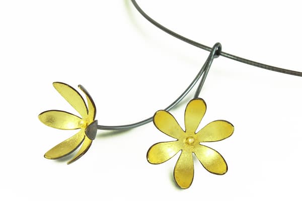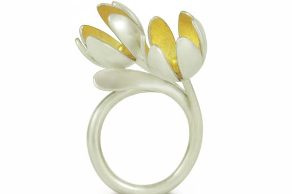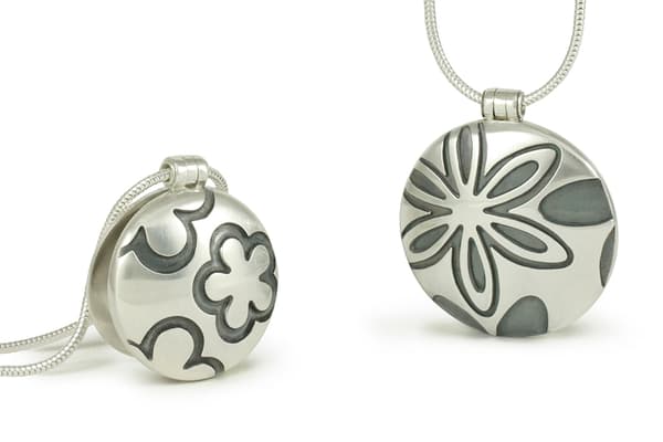 Gabriella Casemore is known for her refined modern interpretation of floral designs, mainly in silver. She is endlessly fascinated with the complicated structures found in flowers and is also influenced by antique textiles on display at the V&A. She designs by exploring her ideas with paper first; folding, cutting, layering, then eventually translating these ideas into highly wearable silver jewellery. Gabriella handmakes every piece with a meticulous attention to detail and finish, using traditional techniques, from her studio at Brass Monkeys in Hove.