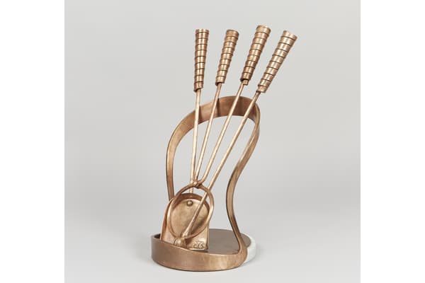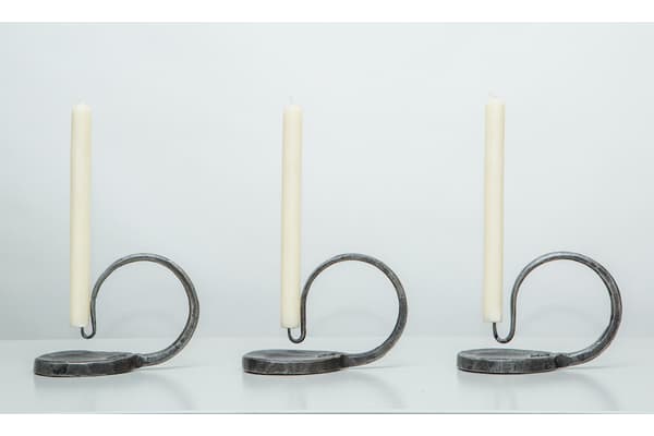 James is a blacksmith and designer specialising in hot forged contemporary metal work. Working for a wide range of clients from architects and commissioners to private individuals, his work is equally diverse ranging from larger scale public art to smaller interior pieces. James is interested in creating a new narrative within the language of blacksmithing, moving away from the traditional patterns and scrollwork designs, to work that has a contemporary relevance to today's built environment. Whilst he finds huge inspiration in the traditional construction and fixing methods that feature so strongly in the blacksmith’s craft, James seeks to combine these traditions with contemporary design and modern metalwork practice to create work that is firmly rooted in the present.