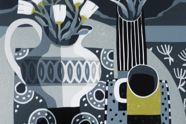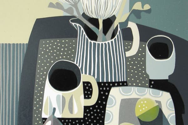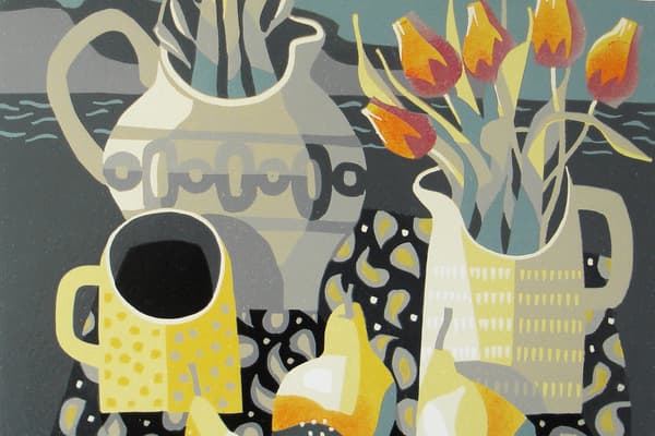 Jane studied illustration and printmaking at Duncan of Jordanstone College of Art in Dundee before following a career in design at the BBC in London. She has now come full circle and returned to her first love, printmaking and particularly linocuts. Jane uses the reduction linocut technique to produce handmade limited edition prints. Her prints reveal a fascination with still life and the richness of her palette and her strong graphic sensibility reflect her love of 20th century artists and craftsmen, 50s textile design and Scandinavian ceramics. Jane is a member of the Oxford Printmakers and the Gloucester Printmaking Cooperative.