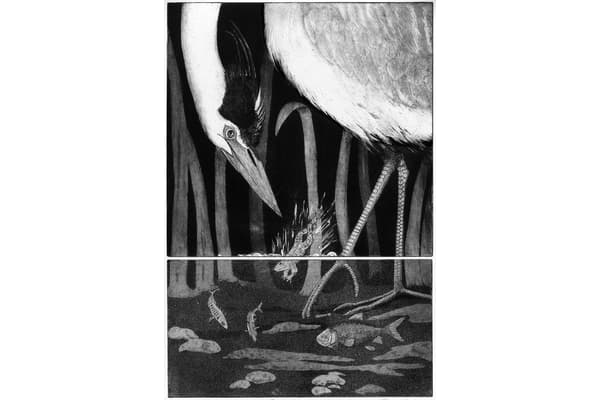 Jane specialises in copper plate etching as it enables her to make very detailed prints. Her inspiration comes from places she has visited on her travels, to animals and birds. When making her prints Jane's aim is to evoke the atmosphere of the place that inspires her or the character of the animals she is portraying.