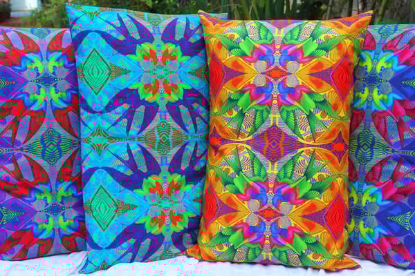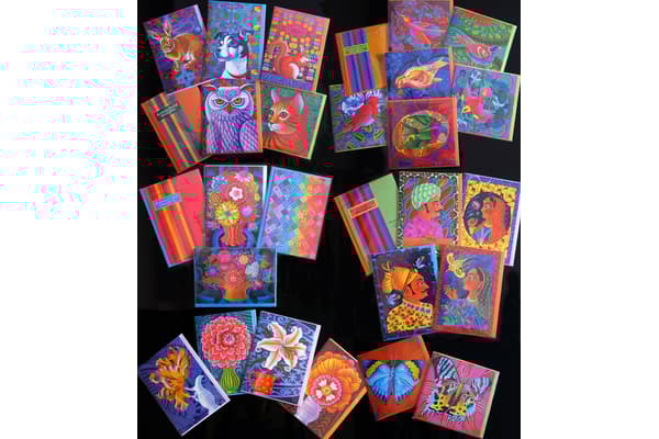 Jane Tattersfield was an established book illustrator for many years. In 2013 she set up 'Tattersfield Designs' where she creates greetings cards, cushions, prints and scarves using images taken from her original oil paintings. Jane makes her cushions by hand using fabric printed with her illustrations. All her products are highly colourful and intricately decorative, with influences from India, South America, textile, folk and ancient art.