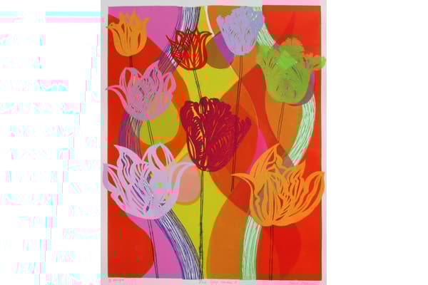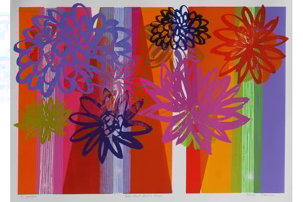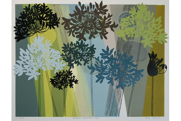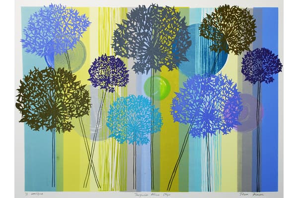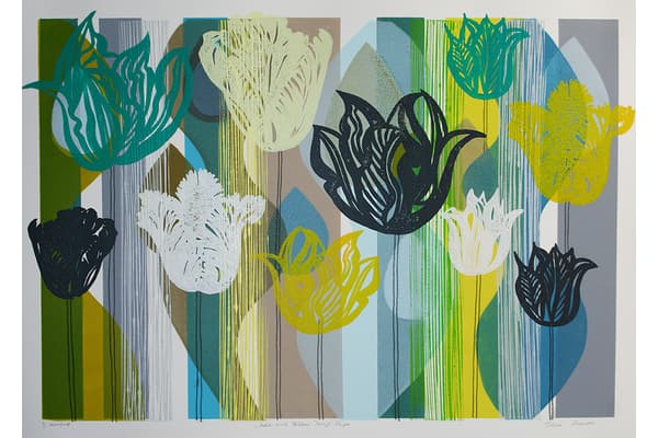 Tessa Pearson studied Printed textile design at UCA Farnham and the Royal College of Art, and now works exclusively on paper creating bold abstract prints, mostly monotypes richly textured with elements of collage, hand painting and woodblock printed imagery. Renowned for her exceptional use of colour, recent work has evolved from sketches of textures and rhythms experienced in inspirational gardens and interpreted in her very recognisable style.