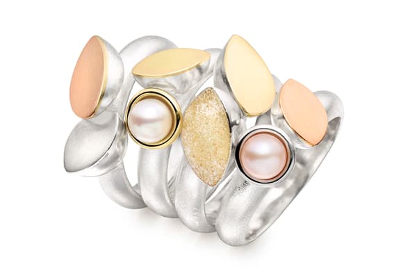 Annie designs and creates contemporary jewellery, inspired by the structural qualities found in organic forms. Particular thought has been given to the identity of the entire collection to emphasise a continuity of shape and design, juxtaposing a wide variety of pearls and precious stones with three-dimensional gold and silver elements. Apart from her set collections Annie is also commissioned to create bespoke work, tailor made to clients’ special requirements.