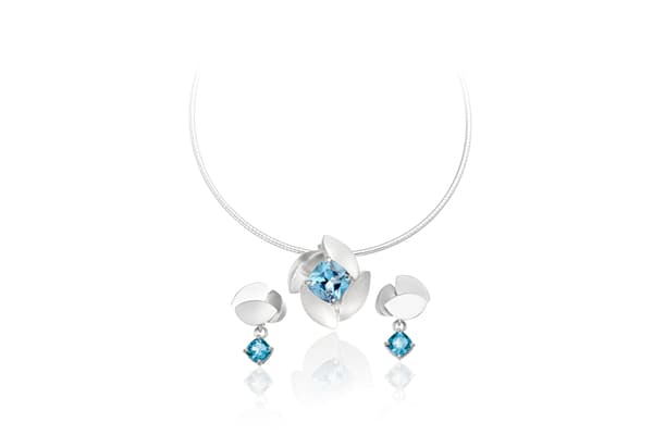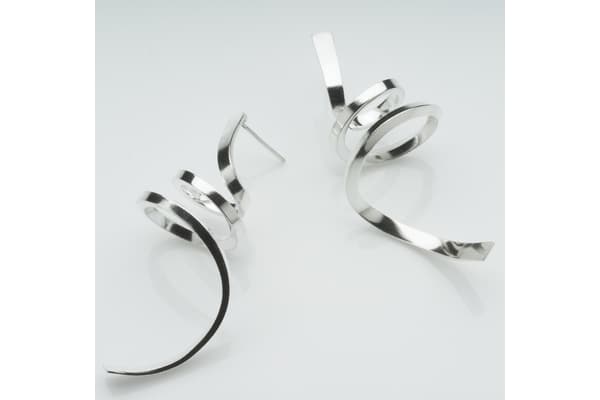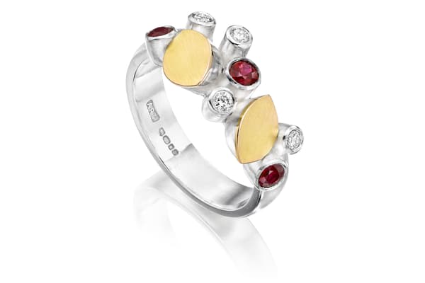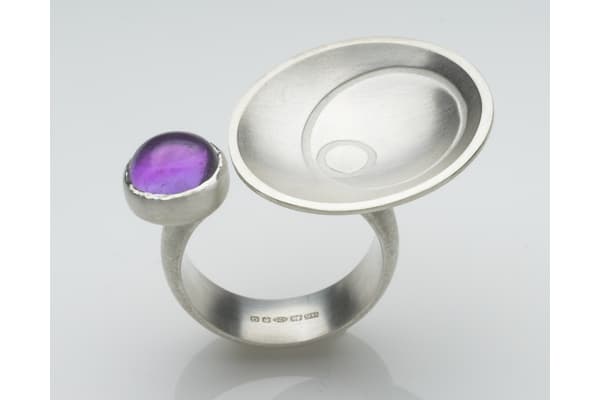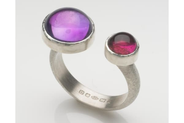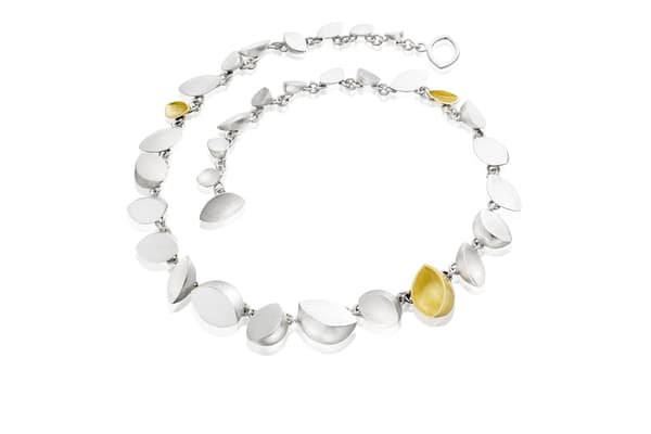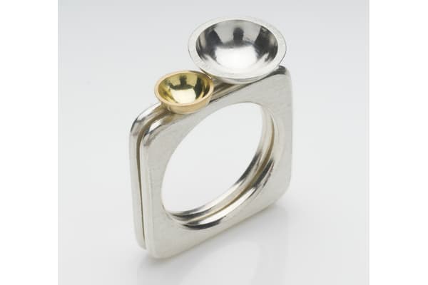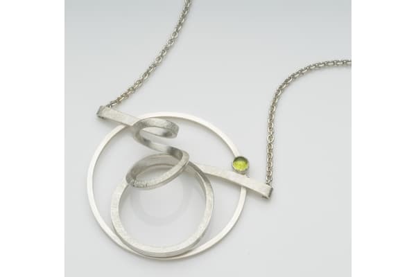 Barbara creates modern jewellery that combines circles, spirals and spheres in dynamic asymmetrical designs inspired by astronomy. The structure of the jewellery itself creates dynamic spacing and overlapping circular forms. Semi-precious cabochon stones and gold combine with silver brushed to a matte finish, bringing vivid colour and softness to the strong geometric designs.