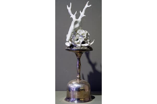 There is a sense of theatre; a feeling of the cabinet of curiosity to Caroline's work. A playfully dark, surreal side to some of her pieces, influenced by a fascination with natural forms, both living and decaying. She is currently working with the ideas of memory and fragility, using a limited, muted palette, incorporating a wide variety of materials and techniques including textiles, porcelain, silver, paper and found objects