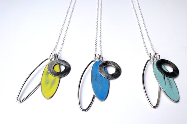 After completing her BA(hons) and a 1 year MA at Edinburgh College of Art in 2011, Heather moved home to the Isle of Skye to establish her business. She takes her inspiration from the ever-changing shoreline and landscapes of Skye and uses stainless steel with elements of silver and vivid discs of colour.