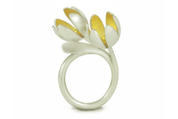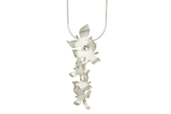 Gabriella Casemore is known for her refined modern interpretation of floral designs, mainly in silver. Endlessly fascinated with the complicated structures found in flowers, she designs by exploring her ideas with paper first; folding, cutting, layering, then eventually translating these ideas into highly wearable silver jewellery. Gabriella handcrafts every piece with a meticulous attention to detail and finish, using traditional techniques, from her studio at Brass Monkeys in Hove.