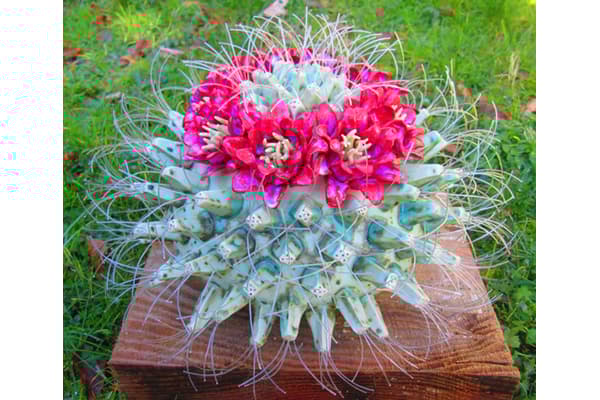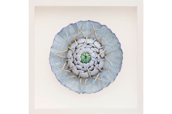 Frances' work is inspired by plants in all their forms, from the hairy opening bud of a poppy, to the perfect Fibonacci that is an opened dahlia. She studies the patterns within the form of the plant and uses these as guidance to build her sculpture. She also plays with scale, making sculptures large to give us an insects eye view. All the sculptures start on the wheel and are then modeled into the thrown form. She works in fine white stoneware.