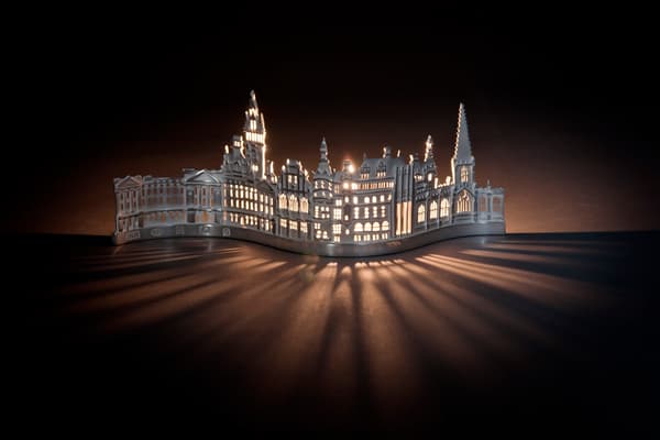 Jen has perfected the silversmithing technique of hand-piercing. She uses the finest of saw blades to hand cut her designs. Her current work concentrates on making bespoke functional silverware of intricate city skylines and scenes. Each piece is exquisitely detailed and can be tailored made to commission, featuring images of special or memorable places. Jen’s drawings form the template with which she hand cuts the design from silver.