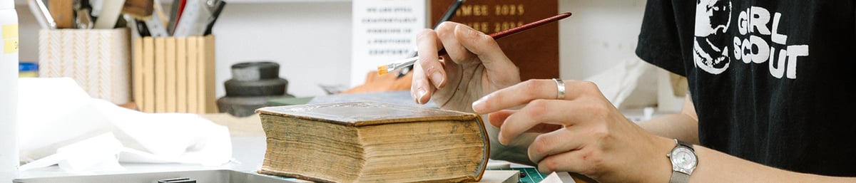 Across three- and four-day workshops, students immerse themselves in time-honoured processes in West Dean’s specialist spaces — forging and finishing jewellery in silver, refining thrown forms through carving and faceting, learning tapestry weaving techniques, working with plant fibres from flax and nettles, and exploring Arts & Crafts style flat-back case binding and slipcase making. The emphasis is on depth, process, and the confidence that comes from sustained making.