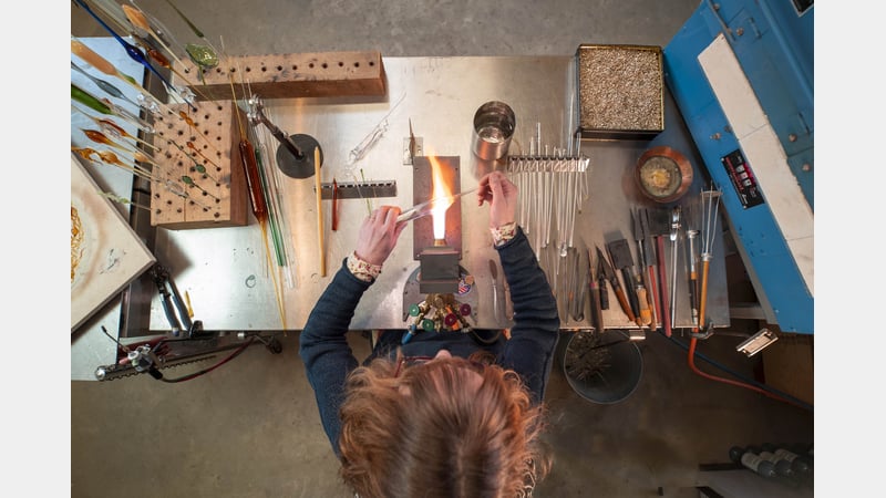Andrea Spencer is a glass artist specialising in flameworking, living on the North Antrim Coast of Northern Ireland. After graduating from Edinburgh College of Art in 1993 with a BA (Hons) in architectural glass, Andrea has maintained her own studio in Northern Ireland for over 30 years.