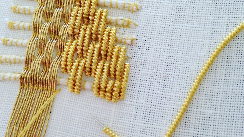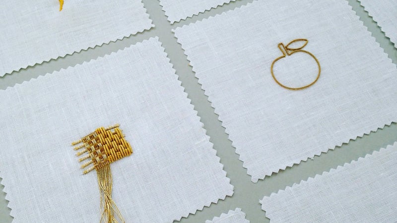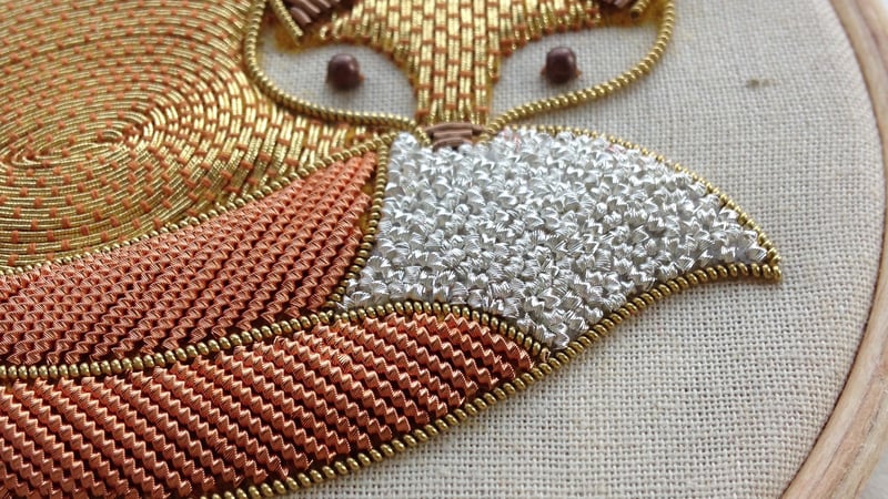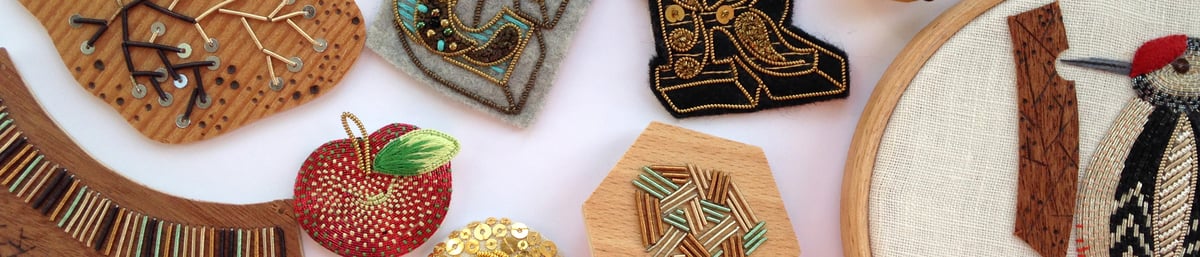 Becky Hogg is a specialist hand embroiderer who trained at Loughborough Art College and the Royal School of Needlework where she teaches on the degree course, as well as running short classes. She also runs courses for the Embroiderers Guild and from her seaside studio in Hastings. Becky specialises in metal thread embroidery and likes to marry traditional skills with unusual materials and contemporary design whilst maintaining the core historic stitches. Throughout her 20 year career in embroidery, Becky has worked with clients including Alexander McQueen, Historic Royal Palaces, artists Gilbert and George, the V&A, and sells her embroidery kits in boutiques and museum shops.