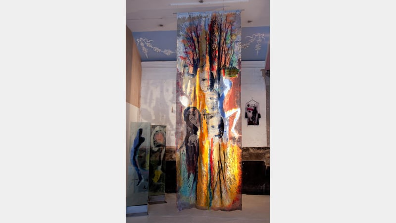 She also makes large scale installations of painted and printed imagery for walls and three-dimensional spaces - including the landscape - where she uses glass as a laminating device for translucent images on fabric. The connection between ideas, images, memory , light colour and context, all conspire in her practice.
