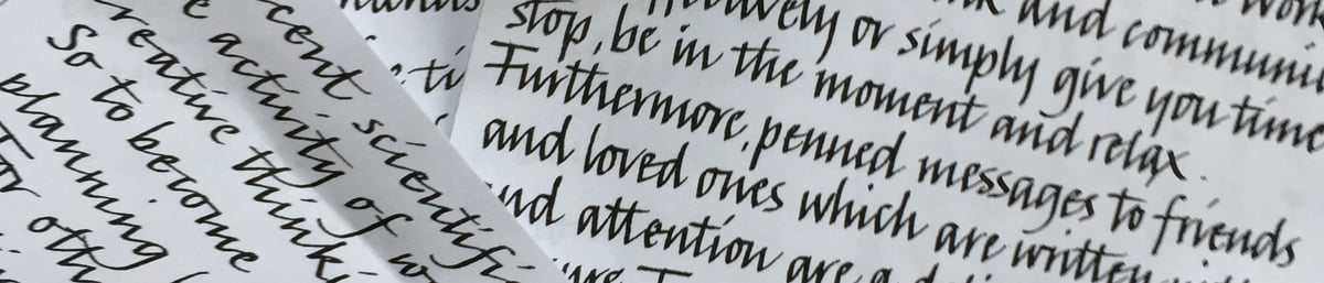 The visual expression of words is my inspiration and the tactile quality of pen on different surfaces - gold, vellum and hand made papers. I draw on many sources such as textile design, pattern in nature and illuminated manuscripts to create my contemporary lettering art.