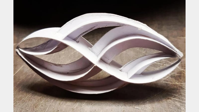 My inspiration comes from making models on cardboard and paper. I have amassed an extensive resource of shapes that I return to and develop. I work in silver, gold, gilding metal, brass and steel. Each metal has a different quality which affects the ease or difficulty of working with it. The luxurious softness of precious 22-carat gold, and the awkward stubbornness of steel.