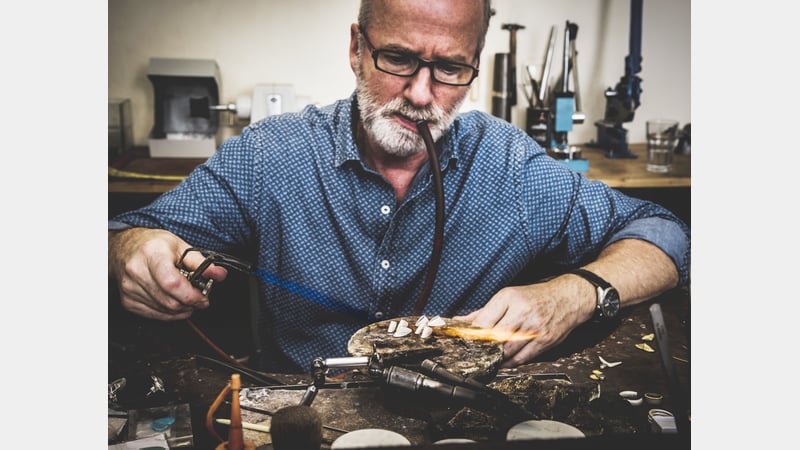 Chris is an accomplished jeweller who, having graduated with a BA, furthered his practical skills and style at the Art School in Zurich, studying in the Goldsmiths’ class. After a year in Zurich, he moved on to Munich and worked with two Jewellers for several years. Returning to the UK, he has exhibited regularly at the Goldsmiths’ Fair and other events including shows in Munich.