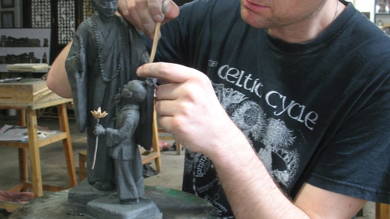 involves woodcarving, studio ceramics, brick installations,