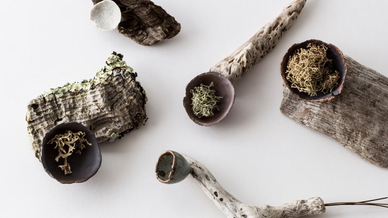 both materials and inspiration from the colours and objects found