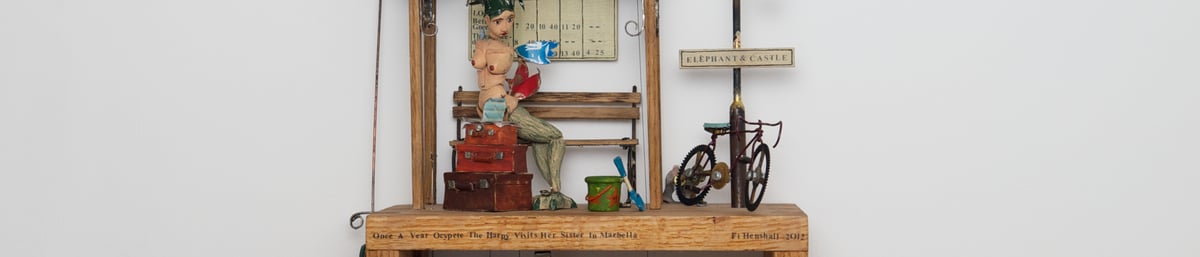 Fi Henshall took a sculpture degree at Falmouth College of Arts graduating in 2004. She taught herself to carve marionettes, but found the idea of figures which could be made to perform and act out a scene by anyone even more appealing, and made her first automaton in 2009.