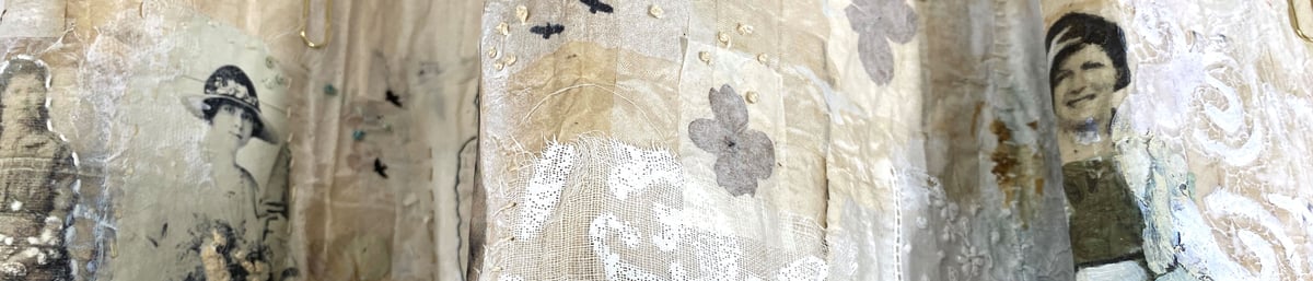 I am a textile, collage, assemblage and book artist working mainly with found objects, old papers and photographs. I’m never happier than when I’m wandering around a flea market, picking up bits of ephemera and working out how to use them in my art.