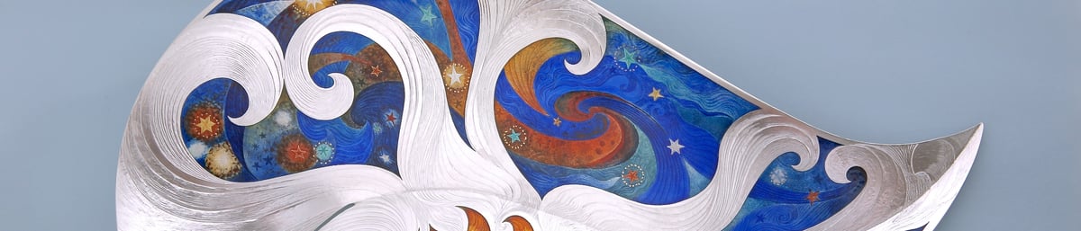 Jane has had training both as a jeweller and silversmith, graduating from the Royal college of Art in 1979. She has been enamelling since 1974, and has a wide experience of enamelling on silver both on a smaller and larger scale. As well as producing her own work to commission, Jane has many years of teaching experience. Her work can be seen in several collections including the V&A, Fitzwilliam and Ashmolean museums, and the Queens Collection, and she is a Liveryman of the Goldsmiths Company.