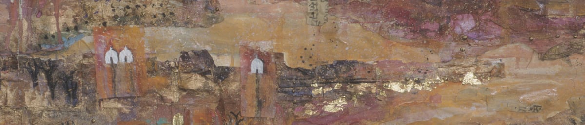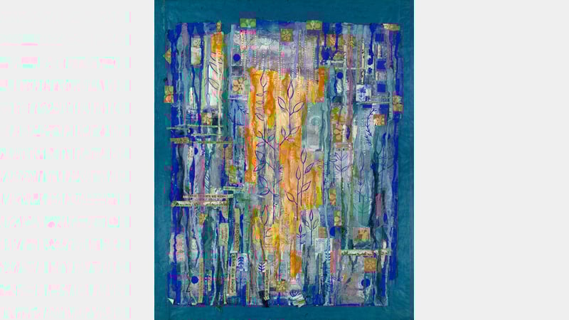 Travel and the experiences of different cultures and the natural world are a main influence and I work from a mixture of memory and observed elements collaged together. I explore mixed media which involves painting, printing, and collage with a main interest in colour, pattern and texture and the layered surface.