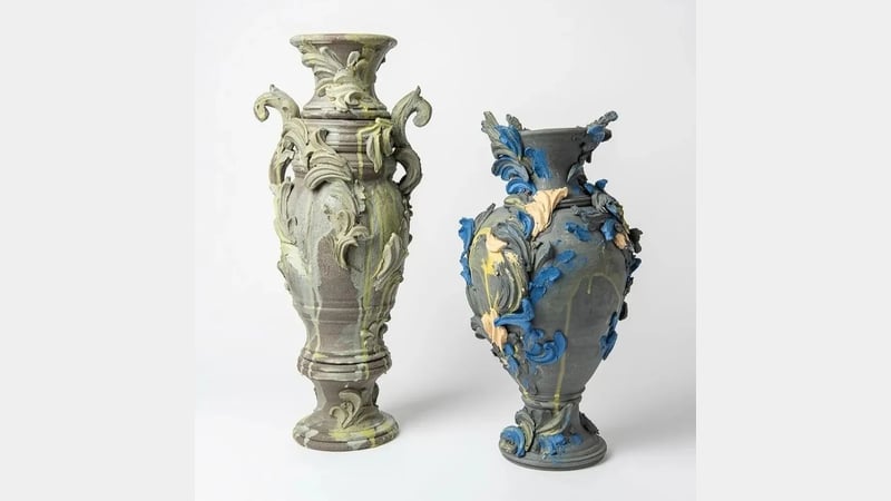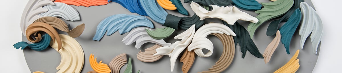 I use wheel thrown & hand built pieces to explore the drama and depth of relief inspired by ornament in architecture, such as plaster ceilings, wrought iron & carved stone.
