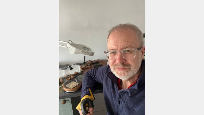 John trained in hand push engraving in Florence, Italy, under the supervision of Beppe Casale. He is the winner of numerous engraving awards, most recent being the 2025 Goldsmiths award for hand engraving and the UK Hand Engravers Association design award for copperplate 2025.