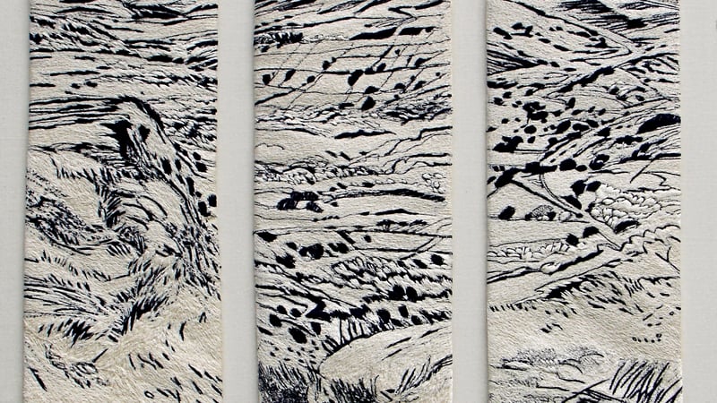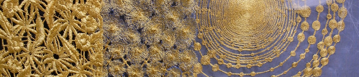 and collages. Recent work on the 'Irish' machine uses gold thread