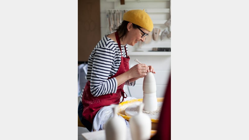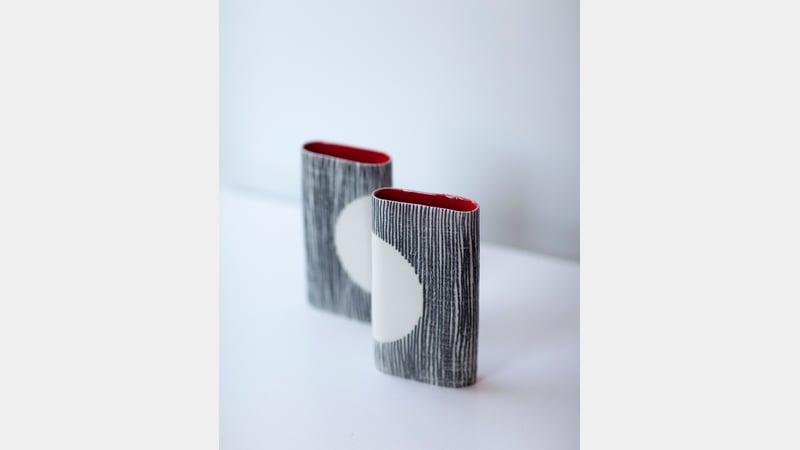 My work is about simplicity of design and shape, bringing these in relationship to the surface. I am inspired by the elemental colour and shape of ancient Japanese and Korean pottery. My focus lies in shape, strong contrast and timelessness of design. What I love about ceramic is that it starts off as a soft lump and can become pretty much anything you want it to be. After the firing, it is hard and durable and can survive centuries. But at the same time, it’s fragile and can be broken into pieces in a moment.