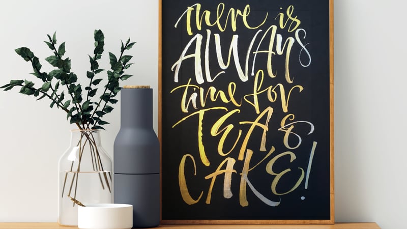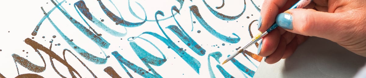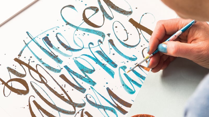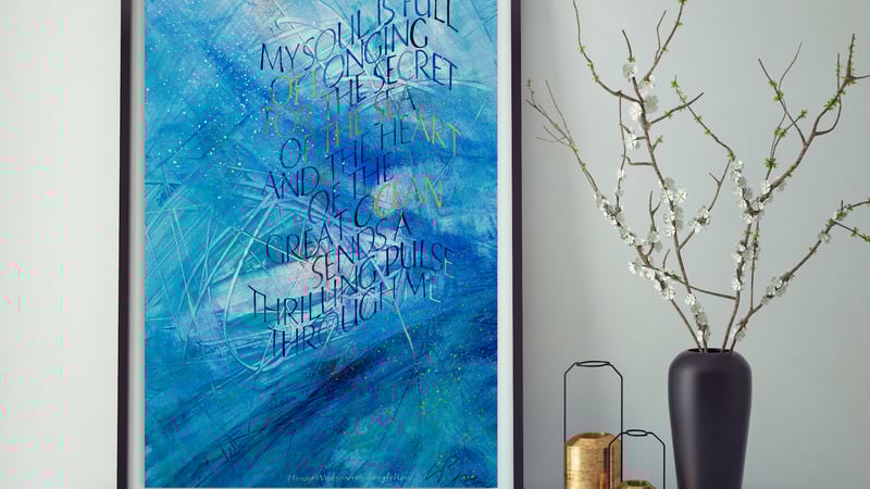 "My calligraphy is a visual representation of the quote I've chosen. A piece about the sea has splashing, frothing calligraphy; a piece about the countryside may use woven words for rolling hills."