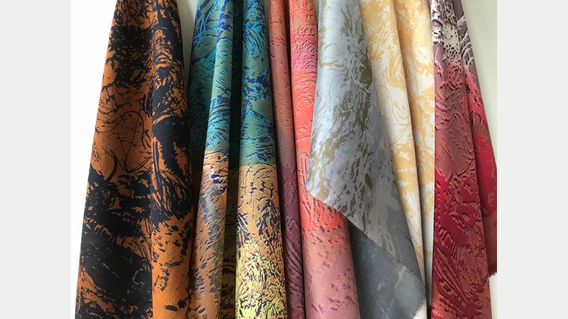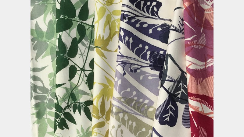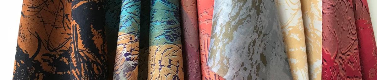 I draw from observation; the inspiration is predominantly landscapes, gardens and foliage. My printed textile designs are lyrical and abstracted representations of this environment; rhythmical, colourful and joyful fabrics.