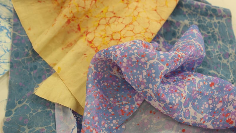 Louise has transferred her teaching skills to teach adults to achieve successful results in the fascinating craft of paper marbling.