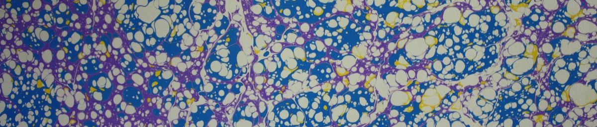 Louise originally trained and worked as a Secondary School Science Teacher. After juggling full-time teaching with working for the family bookbinding business something had to give, so she left education and now works full-time with her husband Stuart. A long time admirer of marbled paper she took several courses which started an interest in this amazing and satisfying craft. Louise spent some time with Ann Muir, whose enthusiasm and great skills inspired her to take marbling up more seriously. Her papers are used by bookbinders for book coverings and endpapers.