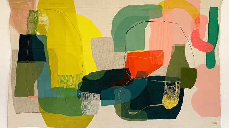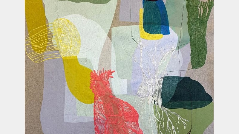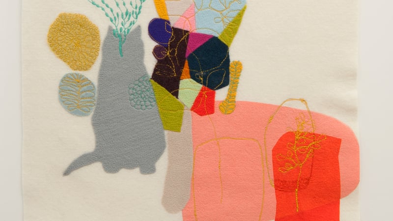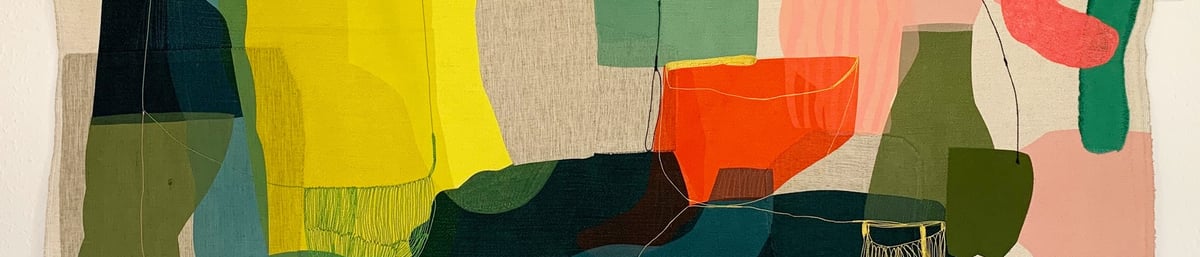 I am motivated by the material qualities of ink, paint, fabrics, threads and yarns and how abstracted forms can describe and signify what is on the periphery or the unseen.