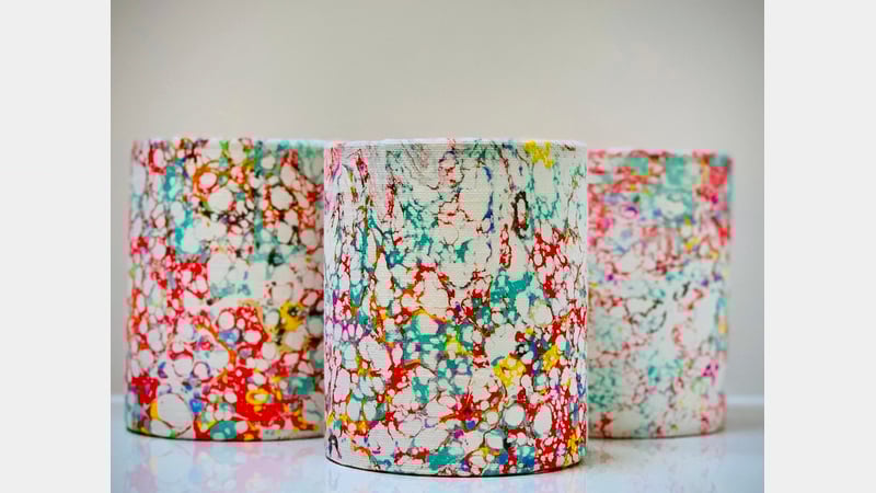 Rachel is a multi-media marbling artist and an educator. She has studied marbling with artists across the world and has over 30 years of marbling experience. Her marbled textiles can be found in galleries and The British Museum.