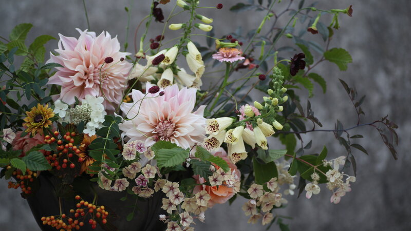 My work is inspired by the changing seasons and surrounding countryside. I am influenced by my horticultural background and am interested in how plants grow and reflecting this in my floral designs.