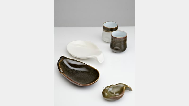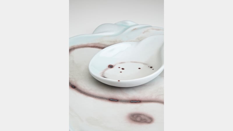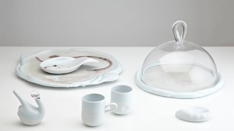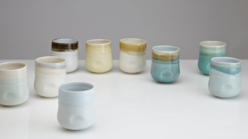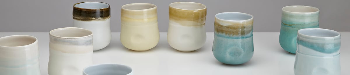 My tactile porcelain tableware is made to provoke a sense of intimacy and awareness of touch. Forms and glaze colours derive naturally from the impressions of landscape in my mind. My aim is to create a still life or landscape in the domestic environment: in other words, memory of landscape made tangible.